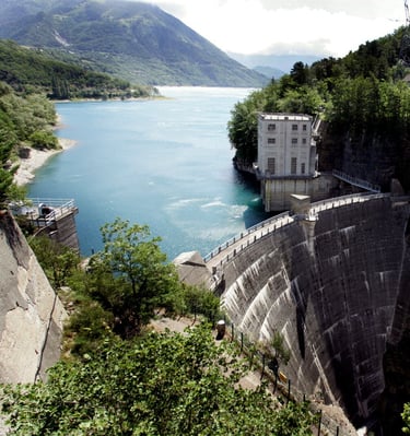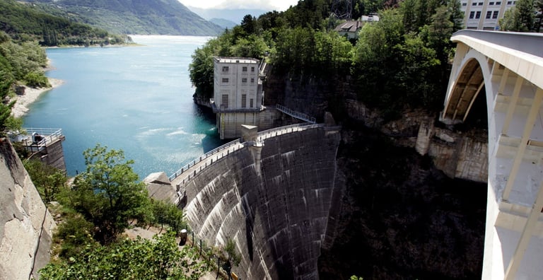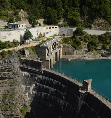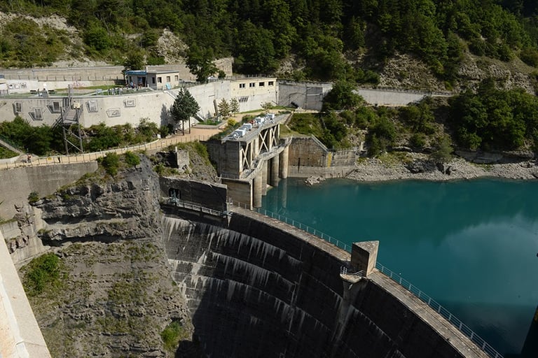 The Sauter dam has a crest length of 80 metres and a foundation height of 126 metres (maximum height above natural ground of 110 metres).